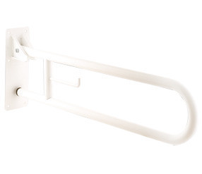 Поручень с шарниром, позволяющим поднимать его вверх и держателем для рулона туалетной бумаги крепящийся к стене , из нержавеющей стали, покрытой белой эпоксидной краской. Подходит для установки в ванных комнатах, раздевалках, душевых кабинах. Предназначен для облегчения пользования санитарными комнатами людям с ограниченными физическими возможностями. Рекомендован для установки в общественных местах, в силу высокой прочности и устойчивости к ржавчине