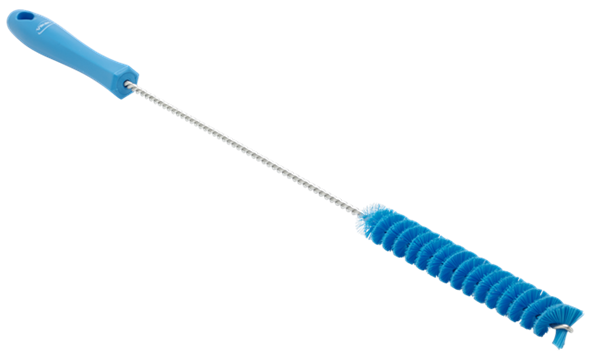 Ворс прикреплен к витому стержню из нержавеющей стали. Прочный, устойчив к химикатам. Используется для очистки насадок для колбас.